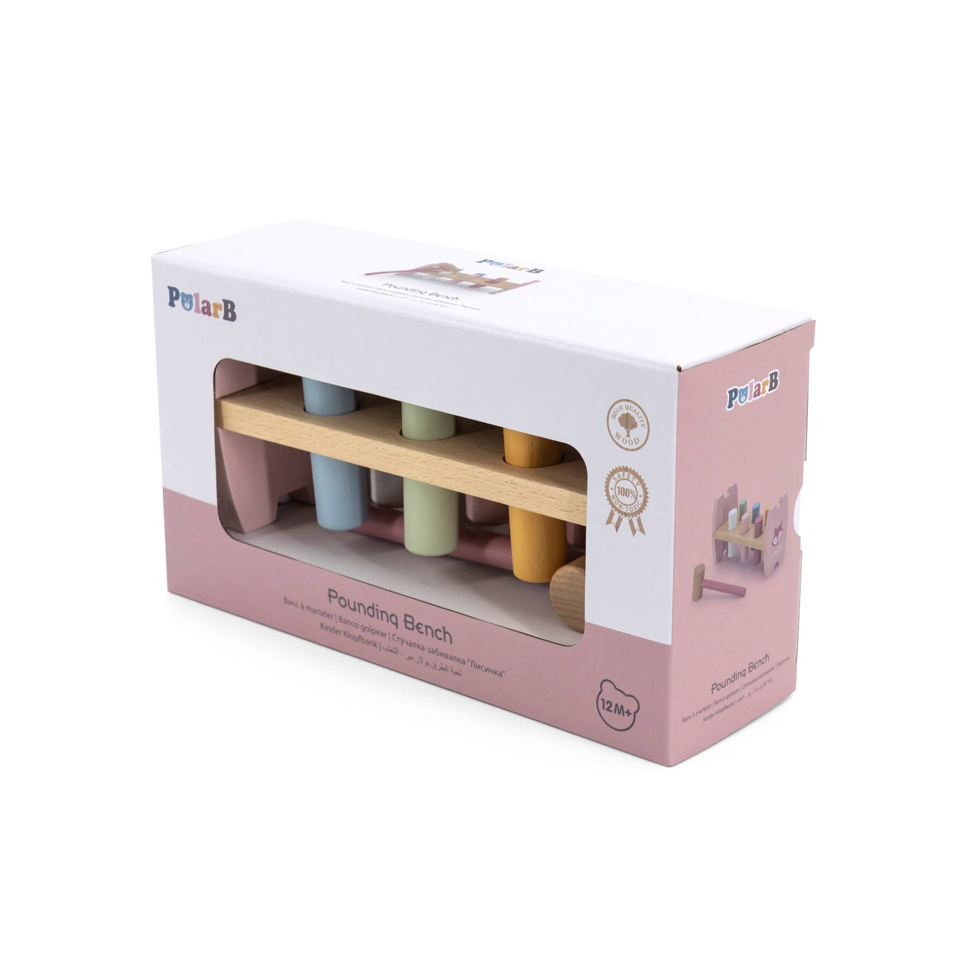 Flott hammerbrett av tre til de minste. Trener hånd-øye-koordinasjon når de skal treffe pinnene med hammeren. Stimulerer også finmotorikk og konsentrasjon.