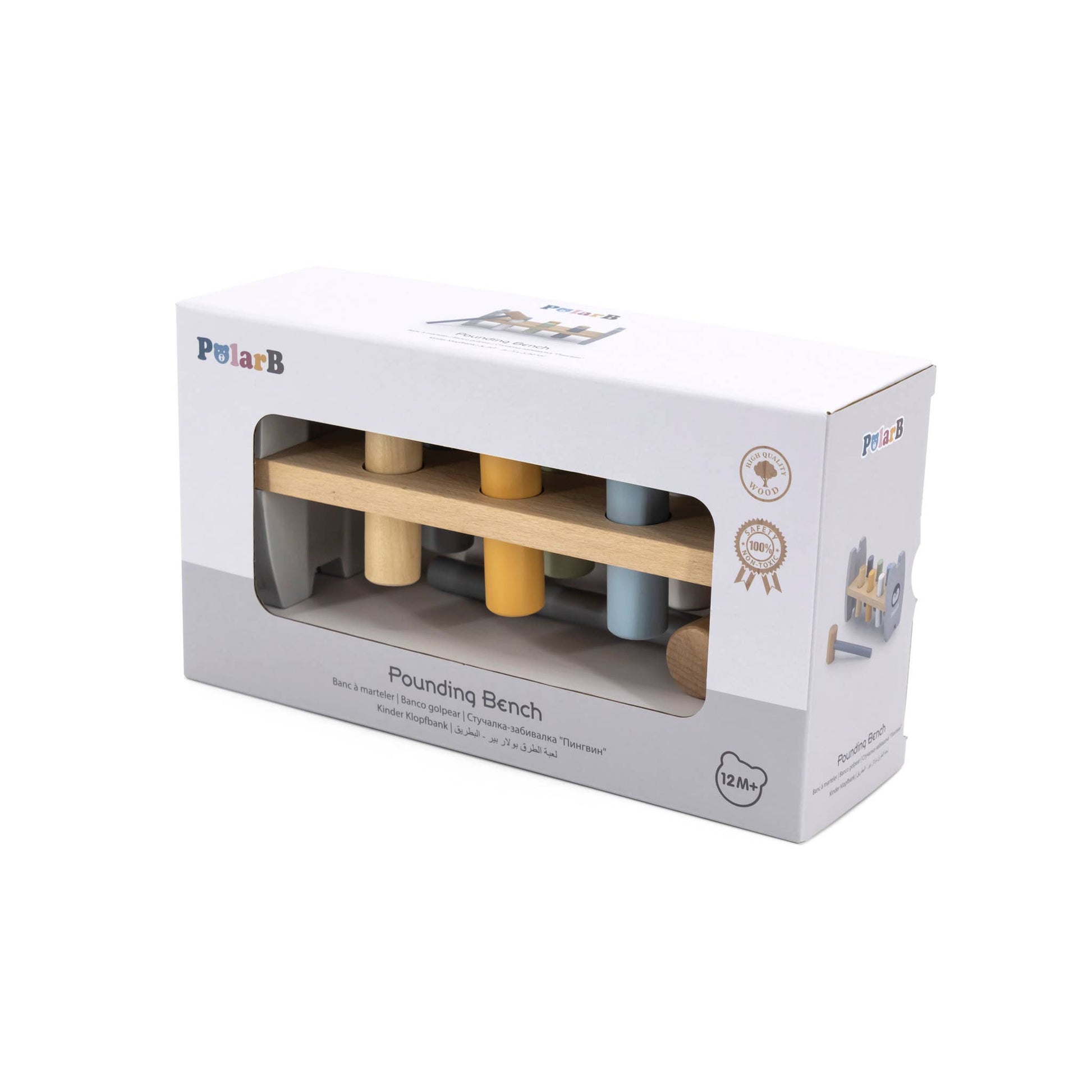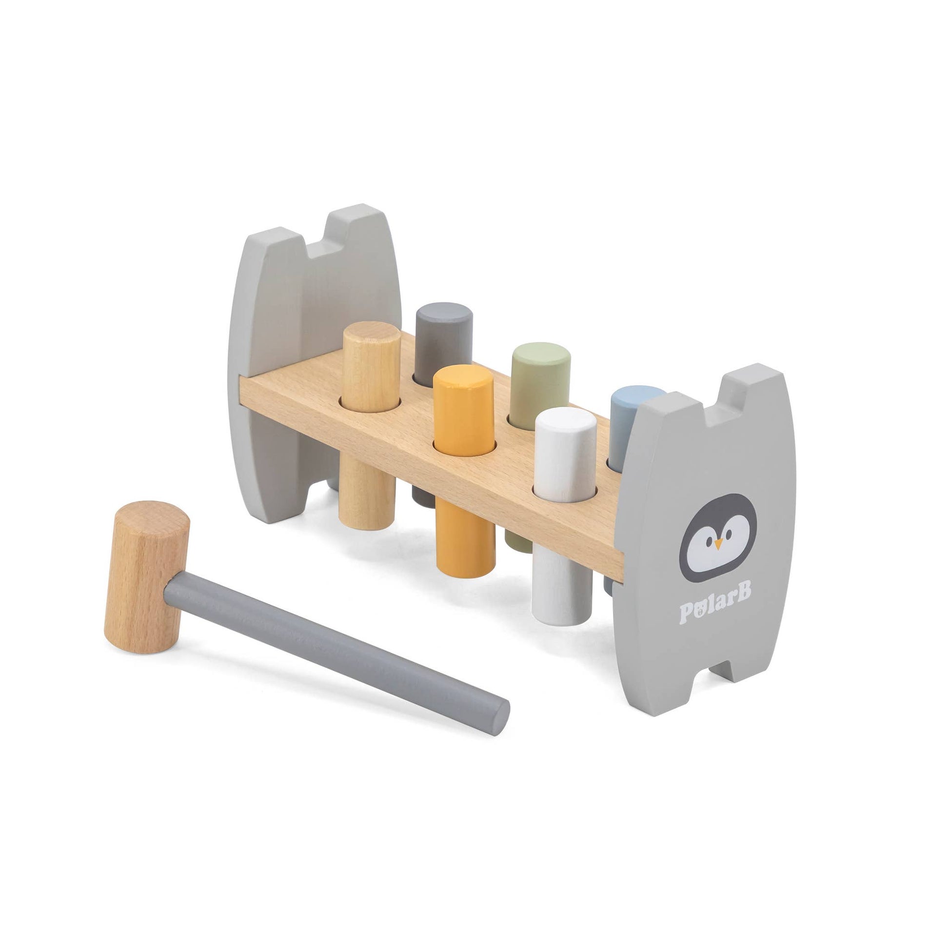 Flott hammerbrett av tre til de minste. Trener hånd-øye-koordinasjon når de skal treffe pinnene med hammeren. Stimulerer også finmotorikk og konsentrasjon.
