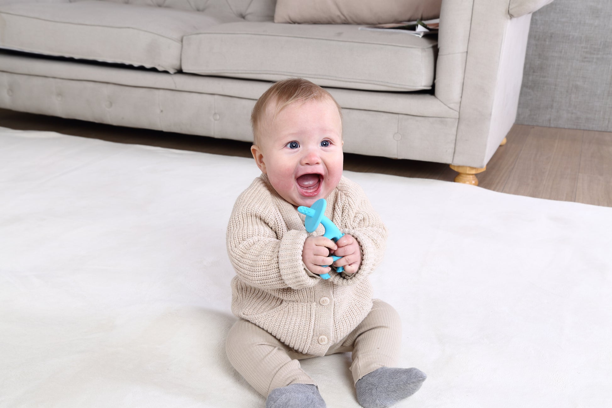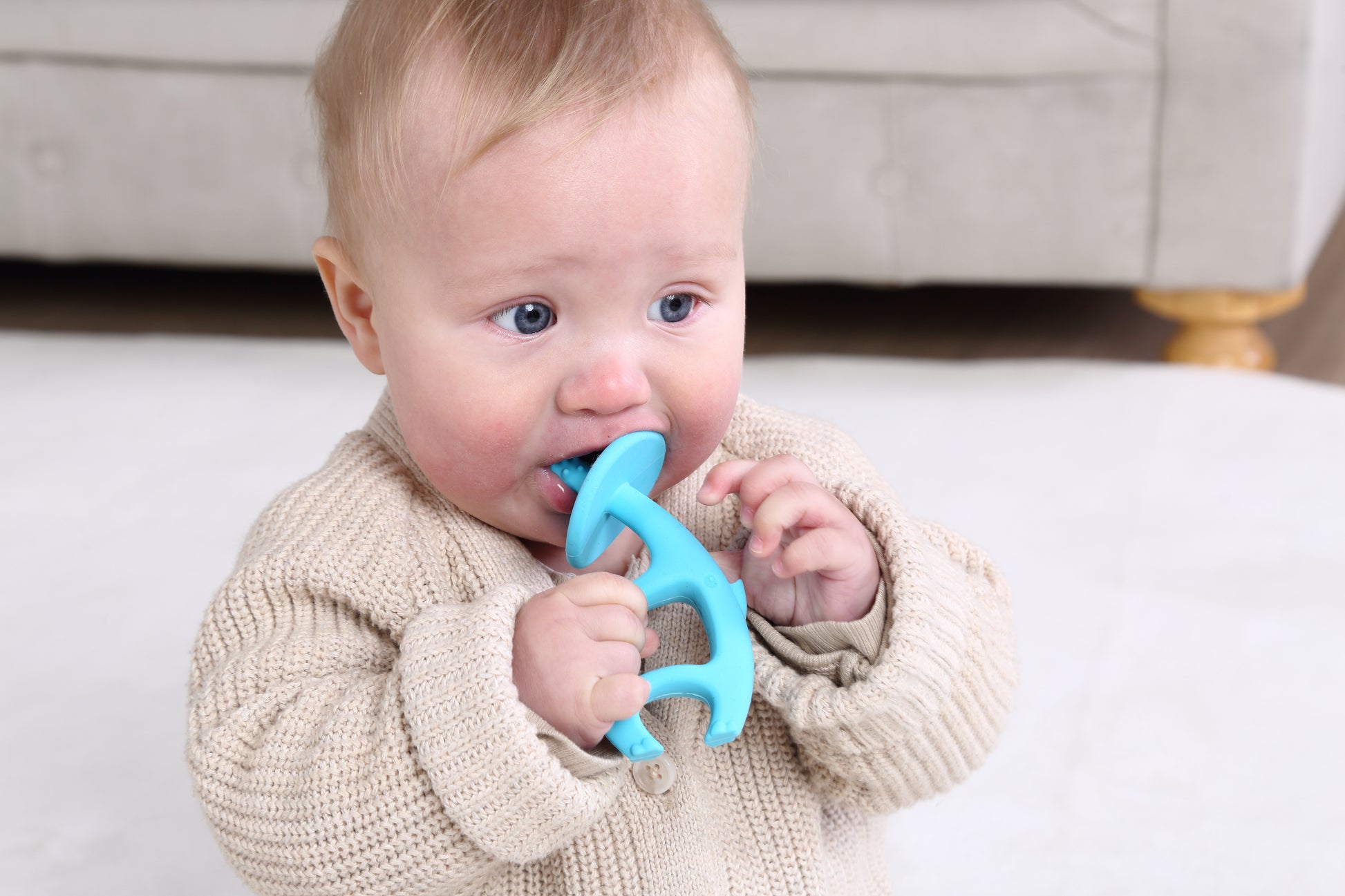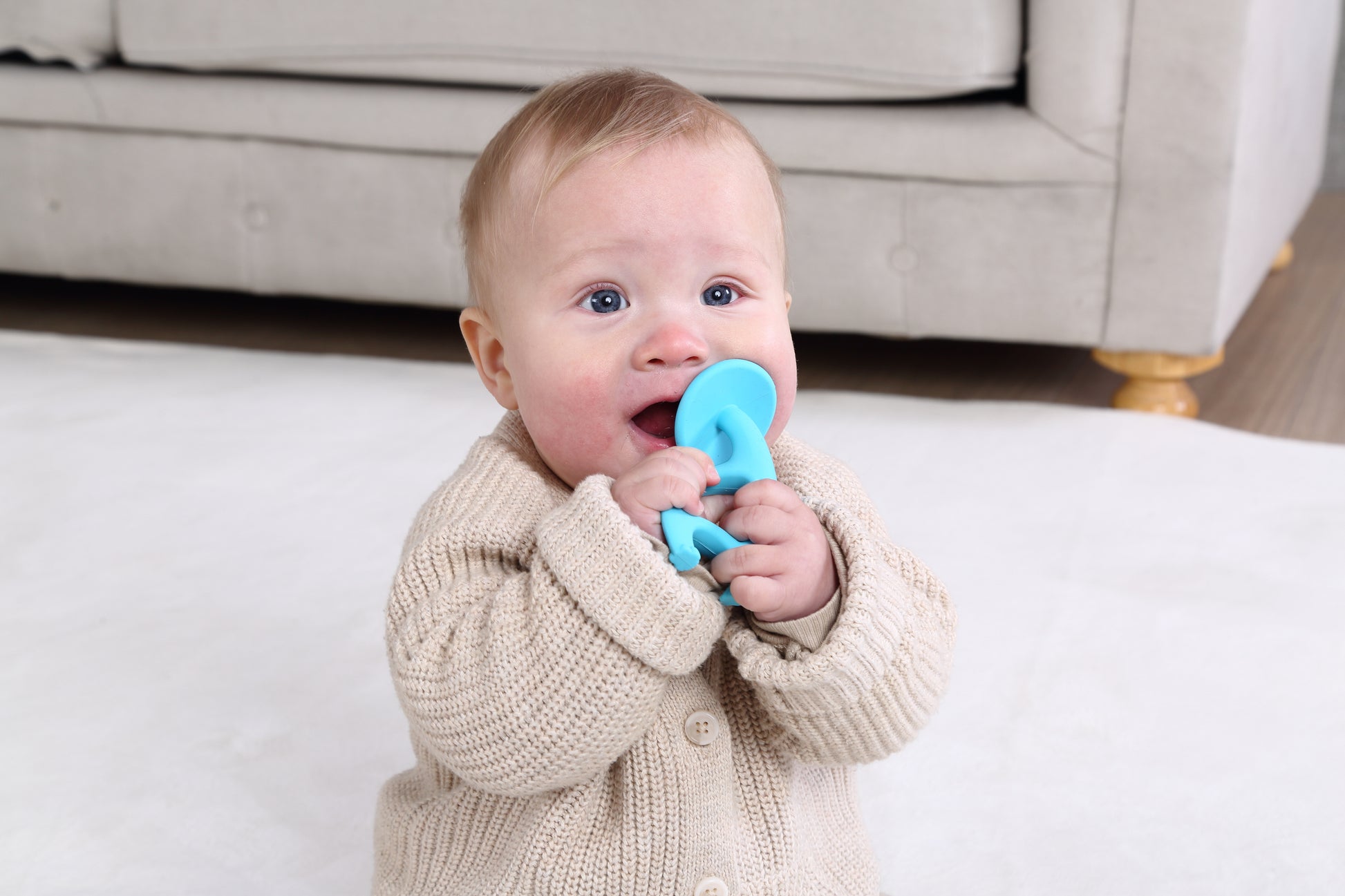 En trygg, myk og fleksibel biteleke. Nuppene beroliger og hjelper til med å stimulere babyens tannkjøtt, og er lindrende for såre gommer under tannfrembruddd.