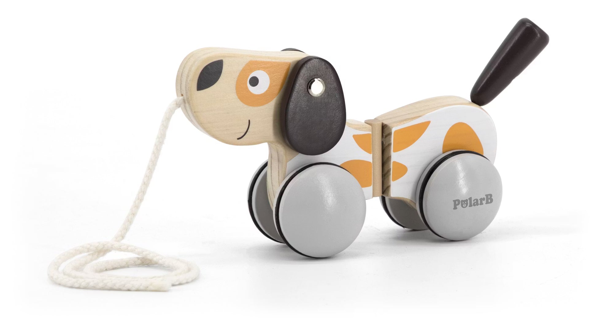 En ordentlig kul og morsom leke formet som en hund med fine farger! Hundens kropp har en hengselfunksjon laget av gummibånd som gjør at kroppen vrir seg i svinger og bevegelsens takt. En skikkelig god første leke! Ta den hunden med på tur da vel!