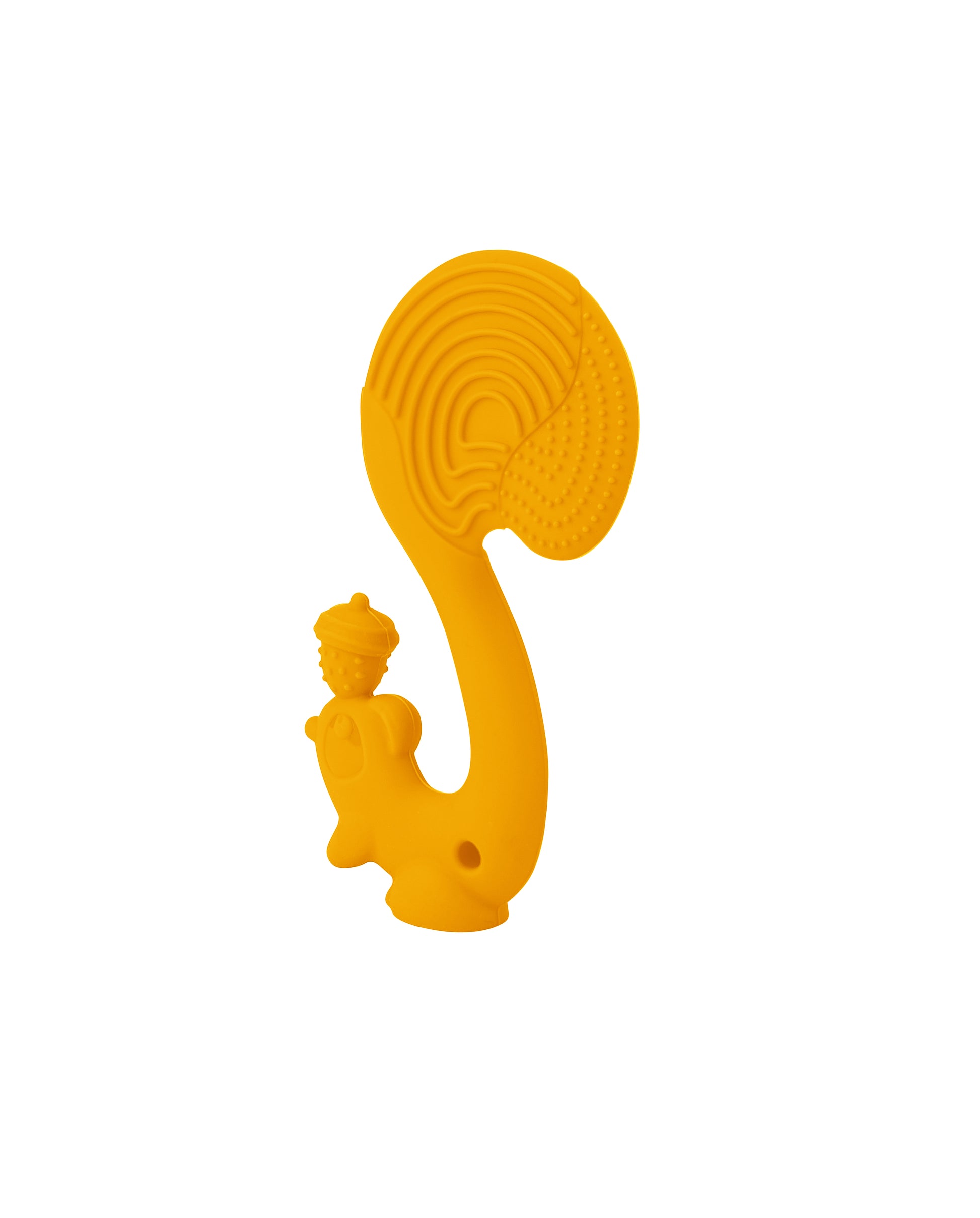 Designet som et S-formet ekorn. En trygg, myk og bøyelig biteleke. Flere teksturer hjelper til med å roe og stimulere babyens gummer. «Easy Grasp» design gjør den enkel å holde. Kan også brukes som en skje til grøten.