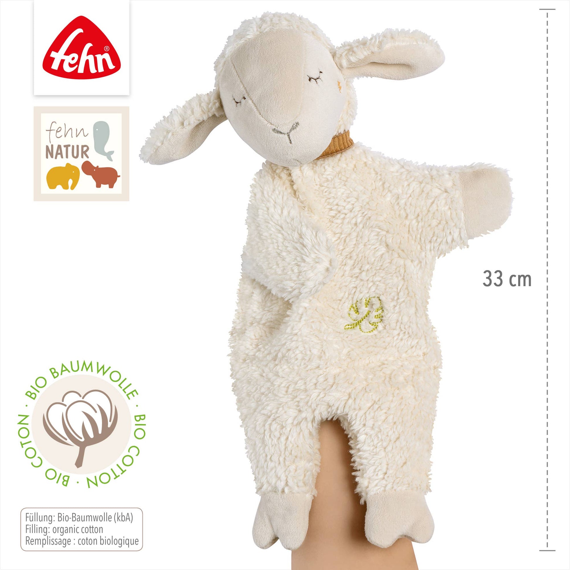 Denne søte hånddukken fra FehnNatur® er den perfekte historiefortelleren, sovekompisen og kosevennen. Som hånddukke kan sauen fortelle godnatthistorier om kvelden, og deretter gi trygghet som en myk koseklut.