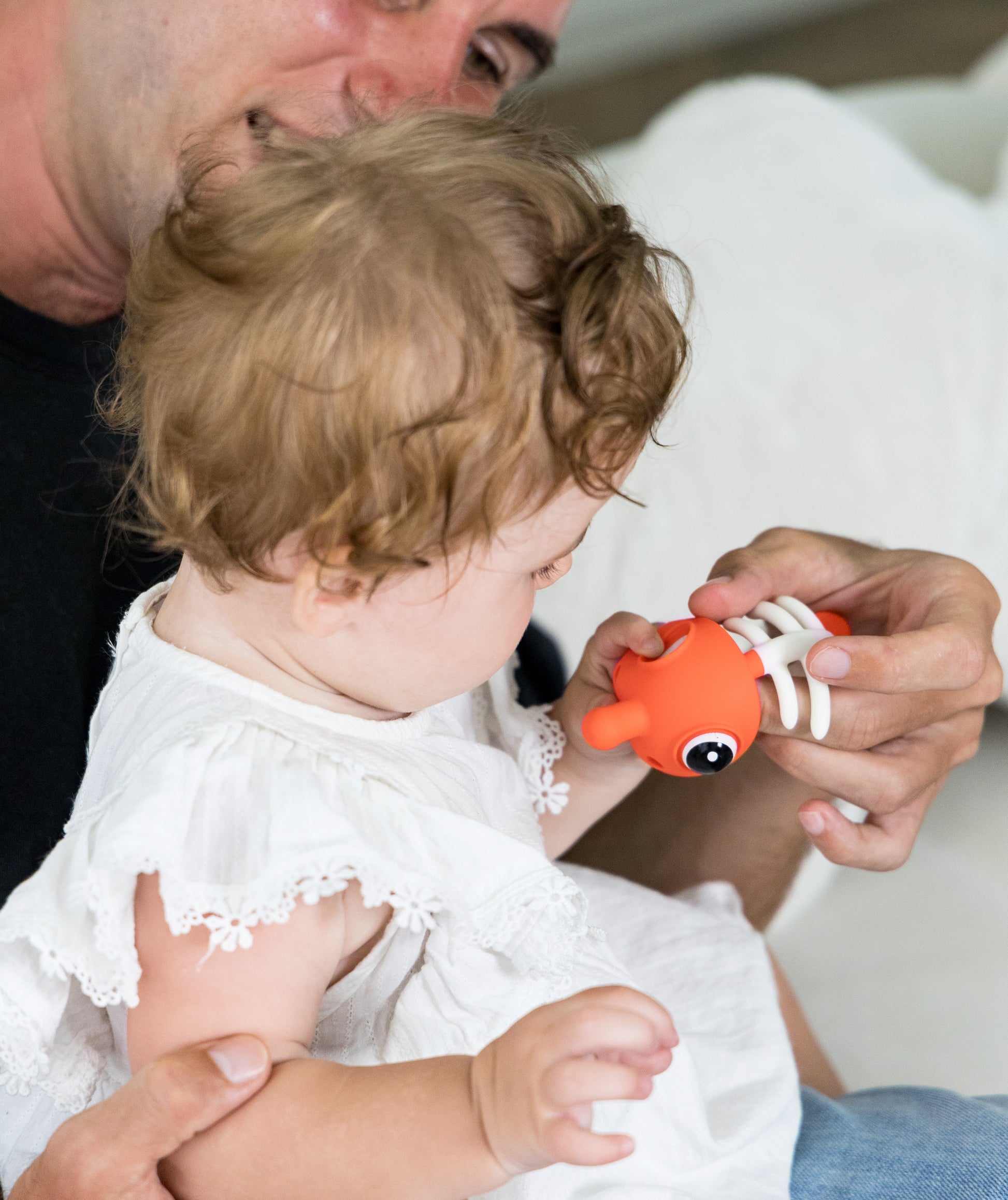 Øynene til den lille fisken popper inn og ut, og fremmer babyens fingerferdighet og tanketrening.