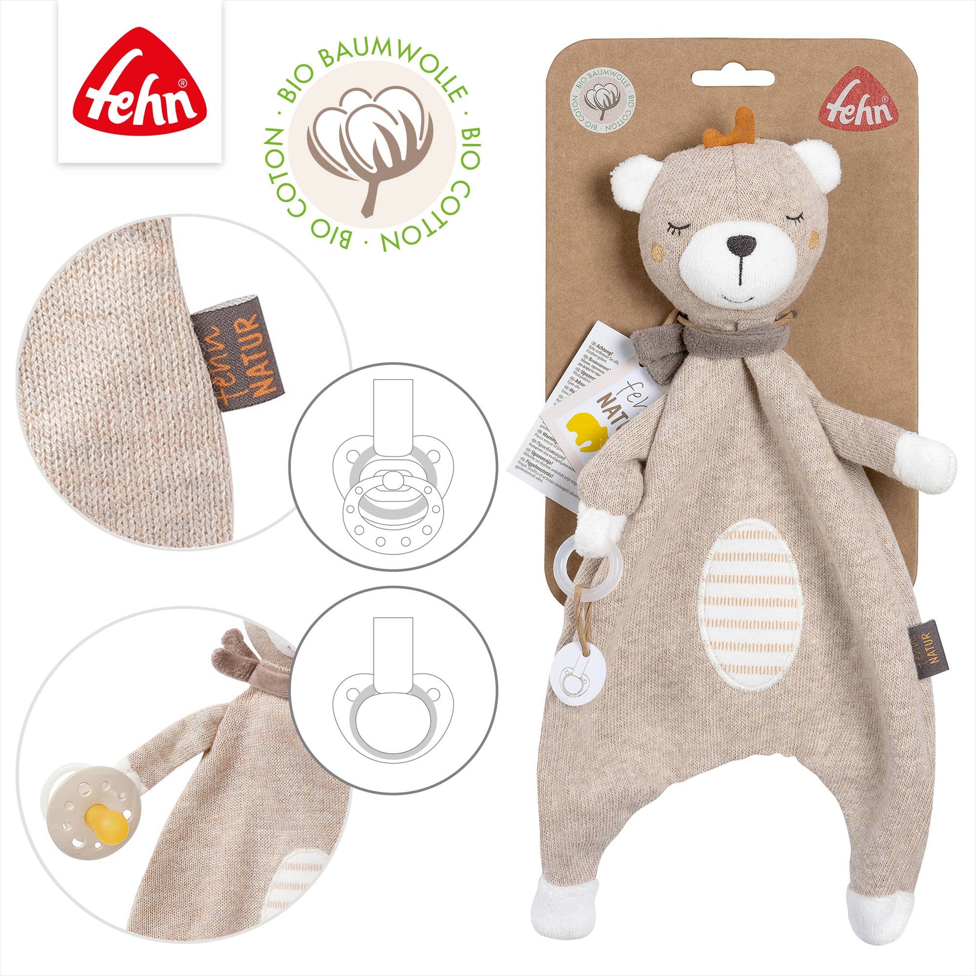 Denne utrolig søte, og plastfrie, kosekluten fra FehnNatur® blir raskt babyens trofaste følgesvenn. Når det er tid for søvn, gir den myke bamsen en beroligende følelse av trygghet. På dagtid inviterer de myke materialene i 100 % økologisk bomull (fra kontrollert dyrking) til å gripe, klemme og kose. Den søte bamsen stimulerer barnets sanser og blir raskt en favoritt.