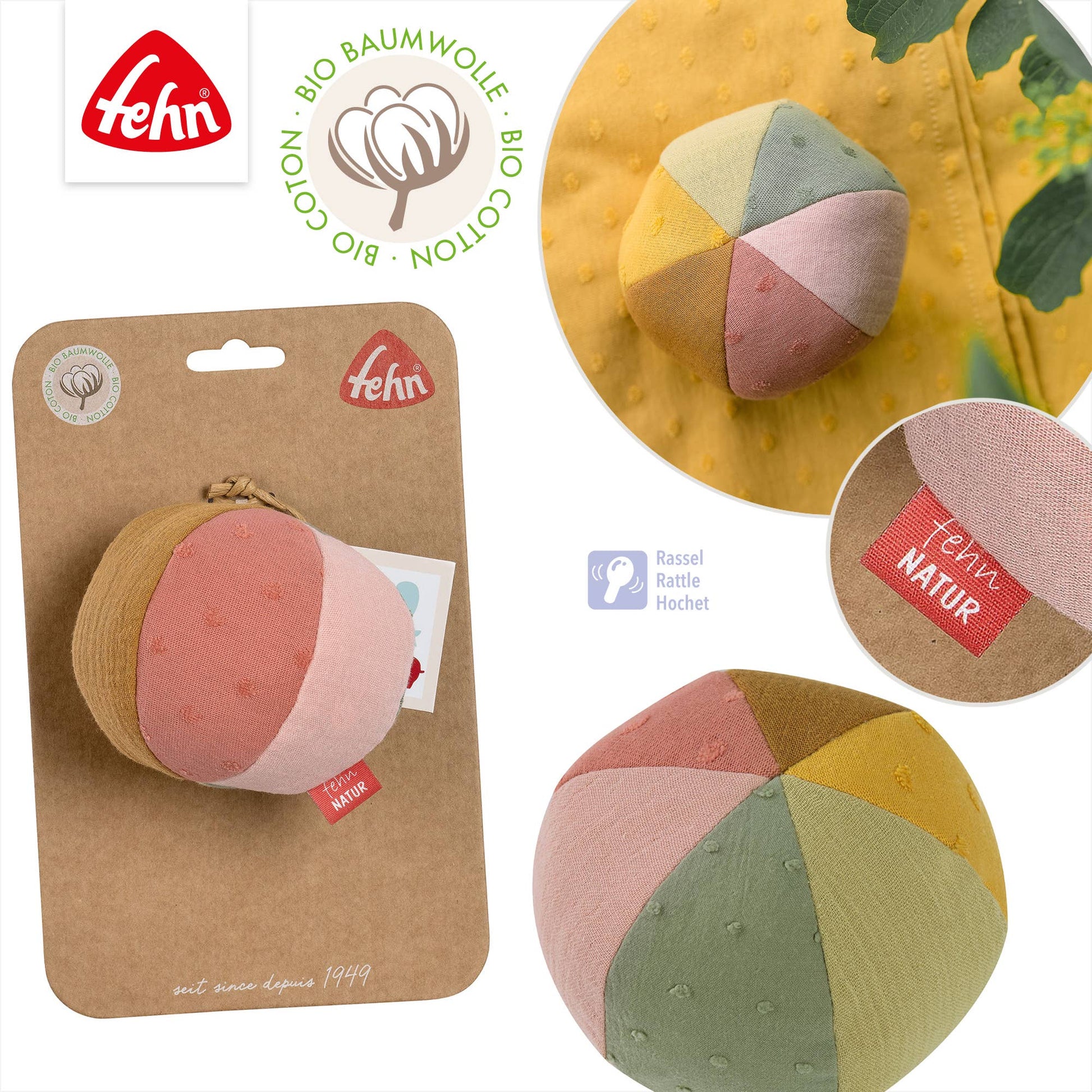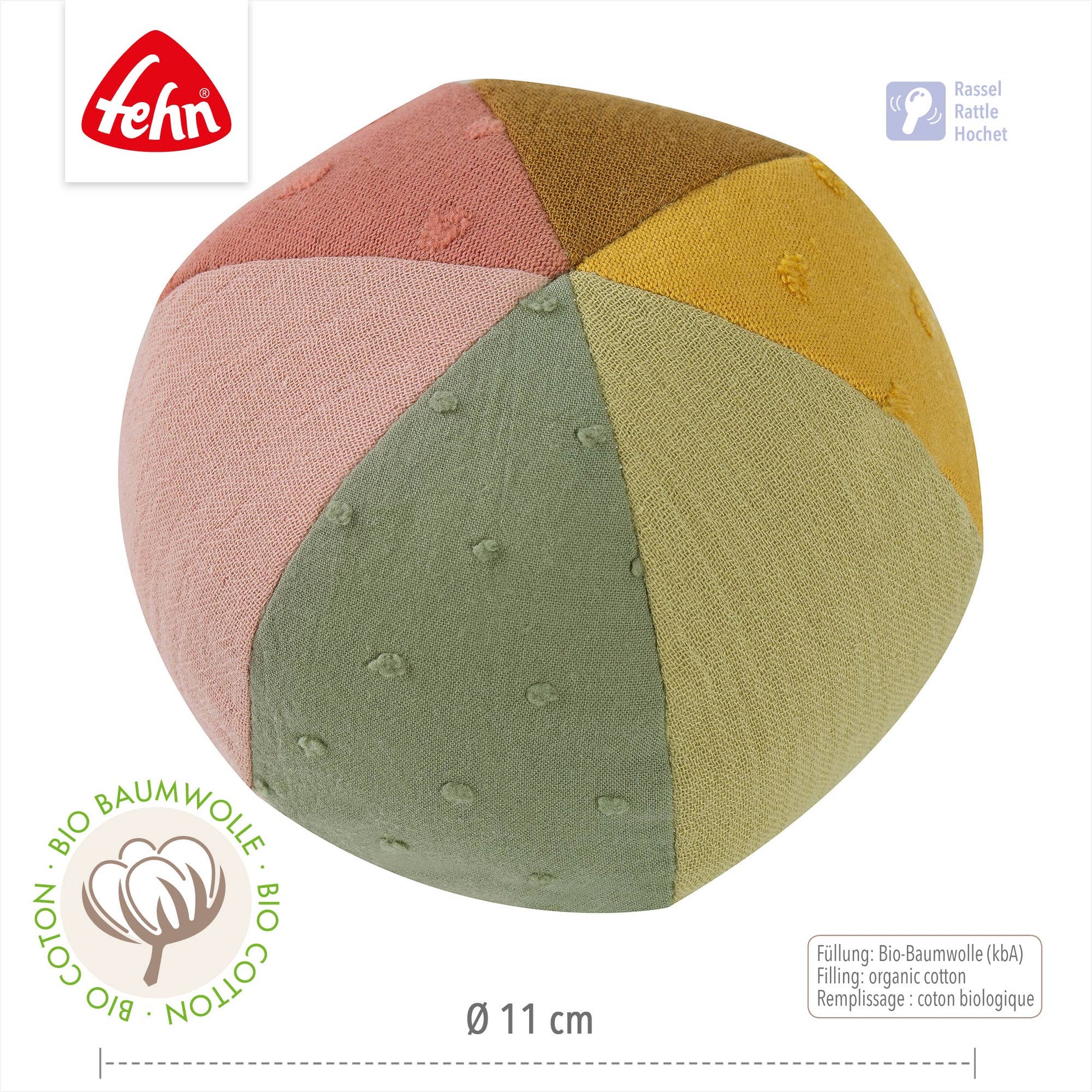FehnNatur® liten stoffball – fargerik motorikkleke med rangle